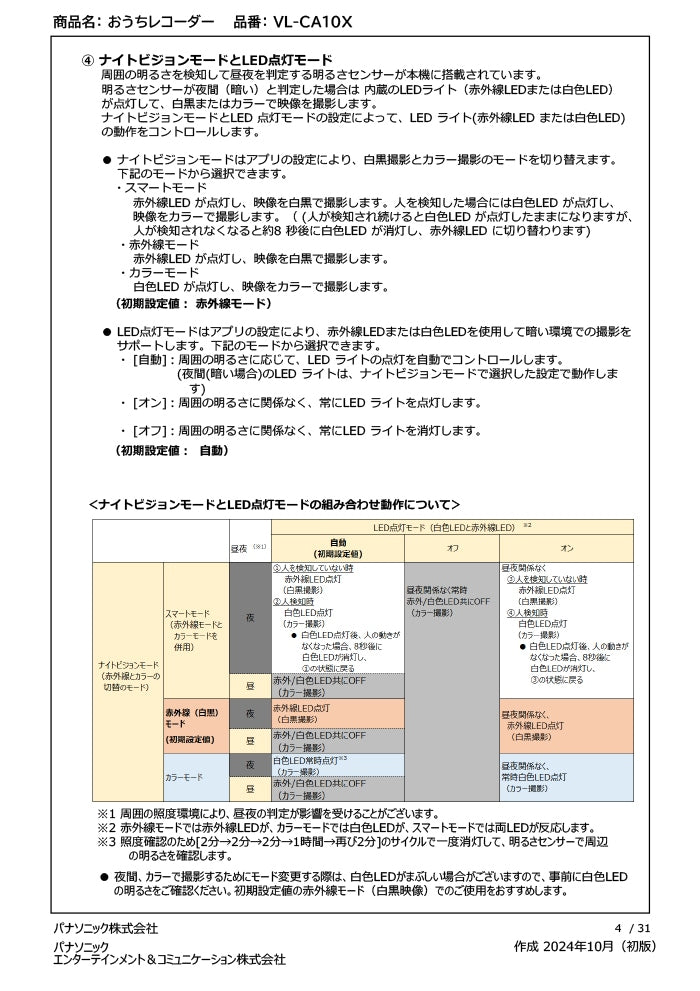 0280 Panasonic VL-CA10X パナソニック 屋外レコーディングカメラ おうちレコーダー 防犯カメラ 電源直結式 防犯対策 監視カメラ 高画質 300万画素 かんたん録画再生